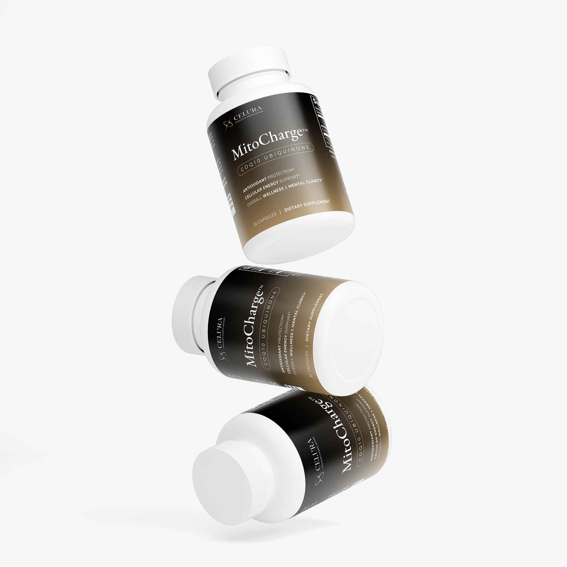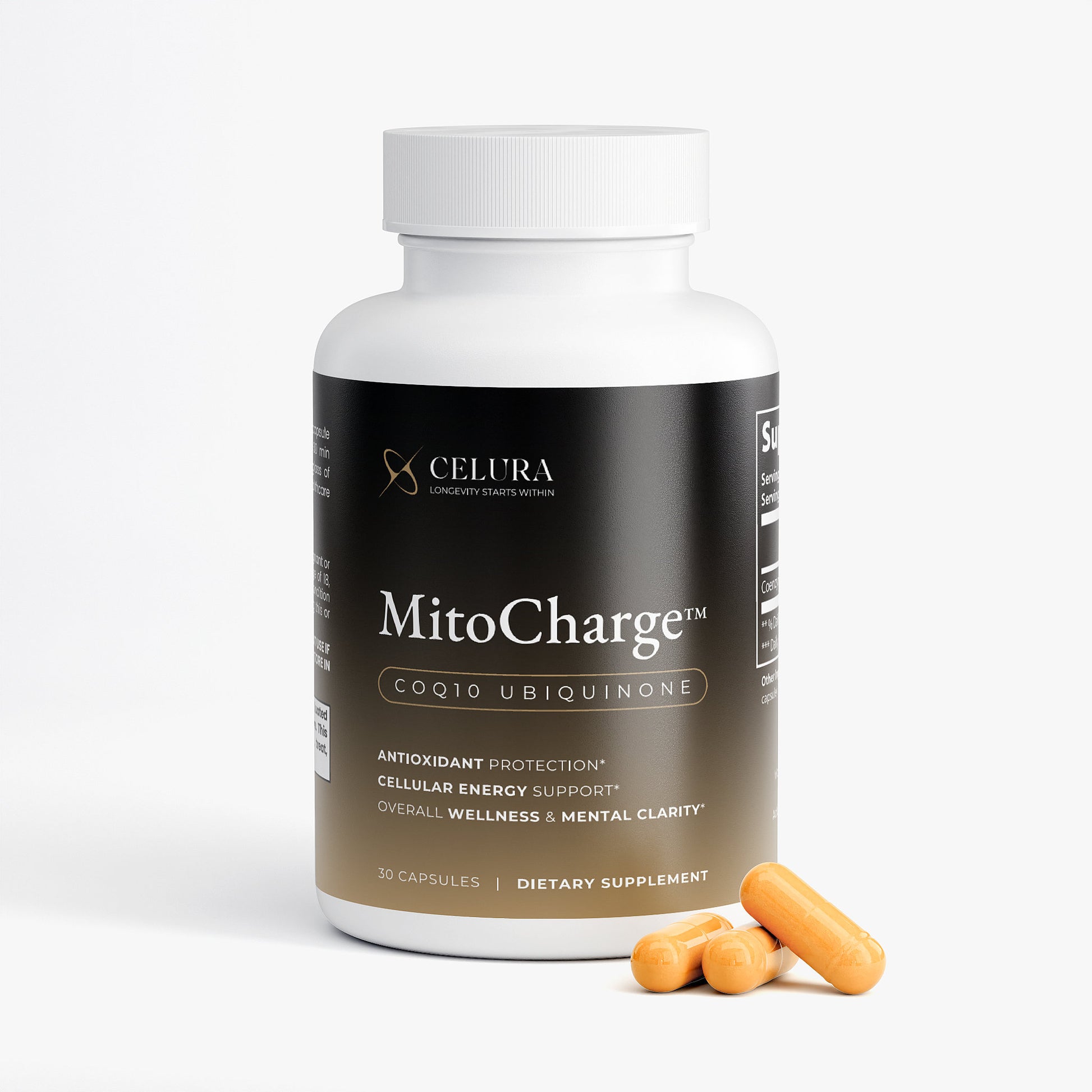 CoQ10 supplement supports mitochondrial function, helping to enhance cellular energy production for overall vitality.